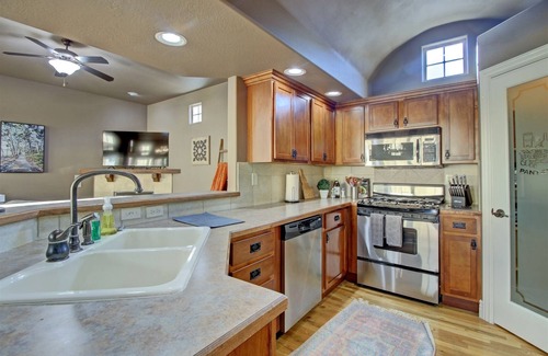 Gourmet Kitchen: Cook up a storm in the updated kitchen, equipped with stainless steel appliances and a large counter—perfect for meal prep or casual dining.