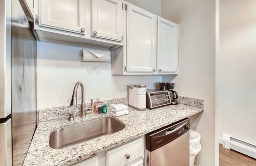 With nearby activities available for any season, this downtown condo, a half-mile from Okemo, six miles from Okemo State Forest, and within walking distance of shops and restaurants, is perfectly suited for your travels all year long! Located just half a mile from Okemo, this home offers guests quick access to skiing, ice skating, hiking, mountain biking, and much more. Inside, the chef of the group will enjoy cooking in the full kitchen and serving a meal at the table for six, or you can walk to a number of restaurants if you prefer to eat out. In the evenings, you can sit out on the back deck and listen to the Black River below, or cozy up in front of the fireplace with some hot cocoa while you stream your favorite movies and shows on the mounted flatscreen TV. The home's high-speed WiFi makes it quick and easy for remote workers and students to complete their projects on time.