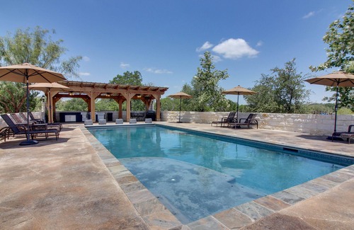 Surround yourself with luxury, a private pool, and river views when you book your next group getaway to this riverfront Johnson City vacation home. Loaded with upgrades throughout the home and a separate guest house, you'll have tons of room for the whole crew to spread out and enjoy upscale amenities. This home is ideal for large group retreats and families - and unlike any other property in the region! Set at the end of a quiet road on 50 acres of Texas terrain to explore, this home gives you the added element of privacy. You'll be just 52 miles from downtown Austin, and with wine country just a short drive away, you can tour the vineyards without hassle.
