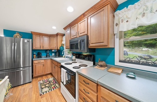 At home, bring a cup of coffee and sit in one of the deck’s Adirondack chairs. With nothing but the birds and the wind in the trees for a soundtrack and amazing views, there's no better way to start the day. When you get hungry, step inside the full kitchen to make some breakfast. Comfortable living rooms on both the main floor and downstairs offer plenty of room to gather together. Three streaming-capable TVs, free WiFi, cable, and a golf multi-cade game offer evening entertainment opportunities. Rest well in any of the well-appointed bedrooms - another day of river adventures awaits tomorrow.