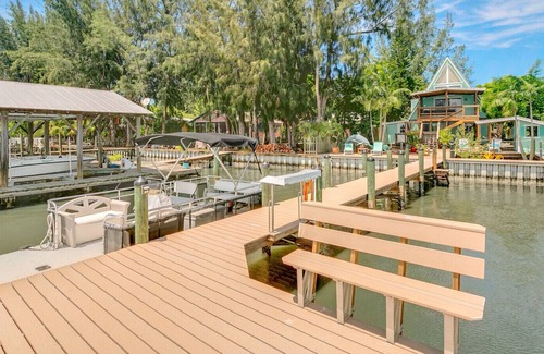 This private island house is only accessible by water. Launch your boat at Christensen's Landing BOAT RAMP 1/2 mile away or RENT a pontoon boat from one of the link listed below and enjoy a long weekend of waterfront living on this secluded island in the Indian River Lagoon. If you don't own a boat use our ISLAND WATER TAXI , the initial ride to the island and return at checkout is included in the rental fee. Extra fare will be charged for island to shore excursions at a rate of $50/hr for daytime and $60/hr after dark to be paid in CASH at time of service. $15-20 is typical tender costs for one trip for about 20-30 min of time to get a group on and off island. If you have a large group that requires two trips, Tender time may be more like 45 min total so about $30. Tender can typically handle approximately 5 to 6 people with basic gear per trip and must be scheduled a day in advance. Park at county boat ramps, just south of Sunoco gas station for Water Taxi pickup or Christensen's Landing just North of Sunoco gas station to launch you boat. Parking is free but can be crowded on weekends and/or holidays.
