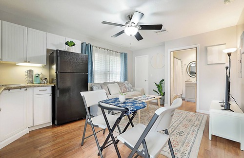 Enjoy the full-sized bathroom with a shower/tub combo. The kitchen is equipped for your convenience, with a microwave/convectional oven combo, an air fryer, and a Ninja Foodie multi-cooker, along with a charcoal grill. You will find a full-sized refrigerator and plenty of cabinet space, to meet all your culinary needs.