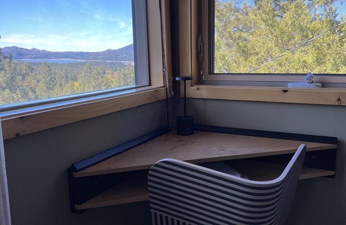 Have a large group and want to celebrate together?! Come on over!! We have a Large 3-story House + a 2 bedroom cabin, side-by-side, so that you can be together and still maintain your space. The main house has 2 completely separate living spaces with a fridge, microwave and storage area if you have a nanny or mother-in-law who needs her own things. Both homes back into the national forrest with the best hiking trails in Big Bear. We are a 2 min walk to the most private sledding trails, and we keep extra sleds in the closet. We are a 5 min. drive to the ski slopes and you can watch the skiers from our living room window. Moonridge is the most upscale neighborhood in town and we decorated the main house with luxury in mind so that you and your family can have fun in style! 360 views including BB Lake! This Listing is ONLY for the 3-story house. If you would like to rent the small cabin, it will be an extra 125/night, + 150 cleaning fee.