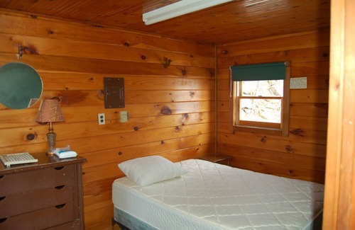 1 bedroom lakeside cottage with kitchen, screened-in porch, and incredible views. The bedroom features a full bed and there are two twin beds in the main room. We no longer provide cots but there's plenty of room for you to bring an air mattress.