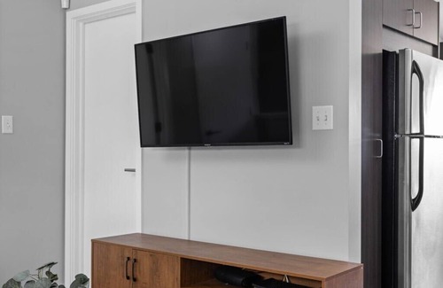 Experience comfort and relaxation in this charming carriage-style home, ideally located near Indy's vibrant Bottleworks District and Mass Ave. The inviting living area, fully equipped kitchen, and serene bedroom with a plush queen bed create a peaceful retreat. Perfect for urban adventurers, this home blends modern comforts with a peaceful vibe for a truly enjoyable stay.