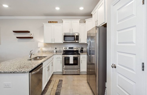 Situated in the Tanyard neighborhood of downtown Pensacola, this gorgeous newly built townhome is perfect for experiencing all that Pensacola has to offer. This quiet community of townhomes are conveniently located to the city's best restaurants, shops, breweries, seafood markets, and parks. There is a huge common area with open green space that is perfect for the kids, a sidewalk for exercise, and a huge community pool! The back patio is the perfect spot for afternoon cocktails or morning coffee. There is a propane grill available as well for the family chef.