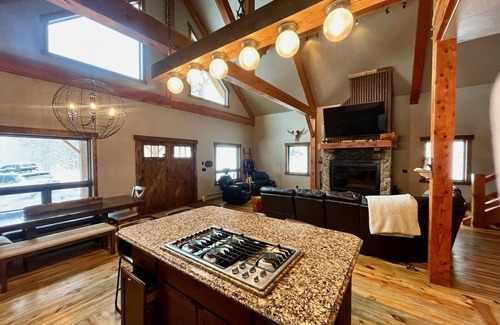 The beautiful kitchen is open to the great room and dining area. Enjoy the peaceful view from the covered deck at the front of the cabin or the quiet back yard from the patio on the back side of the house. You’ll enjoy the hot tub, streaming and gaming ready internet (no cable - must use own login credentials for streaming services), fireplace, large game room with pool table, and ping pong and many more awesome amenities. 5 quick miles down the US Highway 14 to Deadwood, approx. 5 miles to Terry Peak. You can ride Snowmobiles/ATVs/Dirt-bikes directly to and from this cabin.