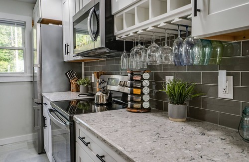A fully furnished cottage, you'll be able to cook your own meals in the newly renovated galley kitchen. The living room entertainment area has a cable TV / smart TV's, wireless speaker system, and gaming consoles along with a section couch and doors that open to the outdoor deck.