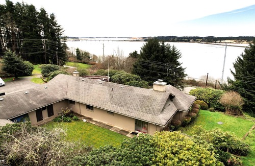 Enjoy a cozy and comfortable stay at Dunes Coastal Getaway, a spacious ranch-style home overlooking the expansive waters of Coos Bay and the rolling hills of the Oregon Dunes National Recreation Area. This three-bedroom, two-bath property has everything you need for a relaxing and enjoyable stay on the Oregon Coast. Equipped with 200/200 WiFi, the two separate living areas have large-screen Smart TVs where you can unwind and watch your favorite shows.