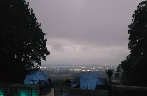 Experience Auckland glamping. Enjoy this modern unique glass dome accommodation with spectacular views over the city. With heating, WiFi, and AC, guests will feel right at home. Nestled in the bush and 380m above sea level, wake up to the sunrise and with native bird signing.