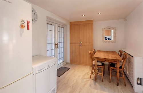 Very well fitted with enough seating for 4. There is everything you need here - washing machine, tumble drier, dishwasher, fridge, freezer with enough room for raw food supplies - don't forget our local Raw Dog Food Company deliver to all our properties for free. To cook on there is a hob and oven plus microwave, kettle and toaster and a filtered water tap too.