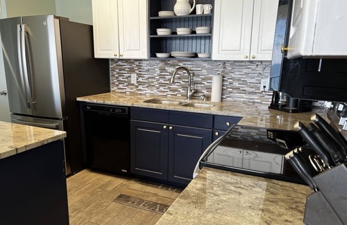 The kitchen comes well equipped, so you can prepare a gourmet meal or quick breakfast, lunch or a special snack. A full-sized refrigerator, range, dishwasher and microwave are included. Dishes, pots, pans, flatware, blender, coffee maker, and more!