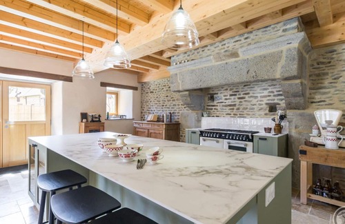 Detached house. Large living room with lounge area (TV, Wi-Fi). Open kitchen with central island (7-burner gas stove, oven, refrigerator with freezer, dishwasher, microwave, espresso machine). Laundry room (washing machine, dryer, sink). Separate toilet. Bedroom 1 suitable for people with reduced mobility ([hidden]x[hidden] bed) with private shower room and toilet. Upstairs: Bedroom [hidden]x[hidden] bed) with private shower room and toilet. Bedroom [hidden]x[hidden] bed) with private shower room and toilet. Bedroom [hidden]x[hidden] bed) with private shower room and toilet. Bedroom [hidden]x[hidden] bed + 2 single beds) with private shower room and toilet. Baby equipment on request. Aerothermal heating (underfloor on the ground floor) included. All charges included. Sheets and towels provided. Beds made upon arrival. Cleaning service included. Private unfenced garden. Terrace. Garden furniture. Deckchairs. BBQ. Parking (small step to access the terrace). Possibility to rent for 6 people from 02 to 23/08/25 (consult the reservation service for rates) This magnificent country barn has been completely renovated by the owners. Its charming stone facade faces south and is decorated with a large terrace. The living room is incredibly spacious and offers all the comforts for your gatherings and reunions. Especially since each bedroom has its own private bathroom. Estelle and Philippe have worked for many years to offer you this authentic and well-kept accommodation. By integrating eco-construction principles and opting for natural and quality materials, the whole is harmonious and gives the occupants of this XXL house an immediate well-being. The Norman furniture or the pretty old-fashioned tableware remind you of the rural past of this agricultural building not far from the beaches. You can join the nearby greenway and explore the bay at your leisure.