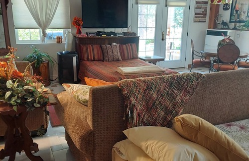 Rustic 5-star elegance guest quarters in a quiet, private estate setting. Eat at your patio in park-like/wooded grounds in addition to a table for 4. Melt into our premium couches enjoying the generous accommodations. Log King-bed suite, new queen murphy bed , 1 extra twin avail for the kids or 1 adult. Natural light throughout. Marble spa bathroom, huge glass shower w/ bench. Beautiful cabinetry, Brazilian agate countertops. Upscale appliances & office space w/Professional grade wifi ready to use. Seasonal loungers, putting green, & bird-watching. Smoke-free. Make us your Mt home. Makes a great wedding event venue if pre-arranged.