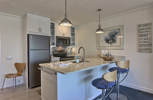 Elevated Lake Charlevoix Views | Private Balcony & Beach Access | Fireplace | is located in Boyne City. Elevated Lake Charlevoix Views | Private Balcony & Beach Access | Fireplace | provides accommodation, featuring TV, View, Balcony/Terrace, among other amenities. This Condo features TV, View, Balcony/Terrace, to make your stay a comfortable one.