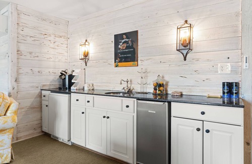 Game Room: Equipped with a shuffleboard table, card table, large-screen TV, coffee bar, sink, and mini-fridge.