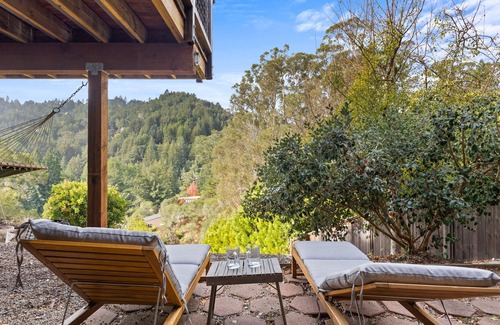 Step out onto your private patio, soak in the hot tub, or relax in the garden hammock while taking in breathtaking views of Cascade Canyon and Mount Tamalpais.