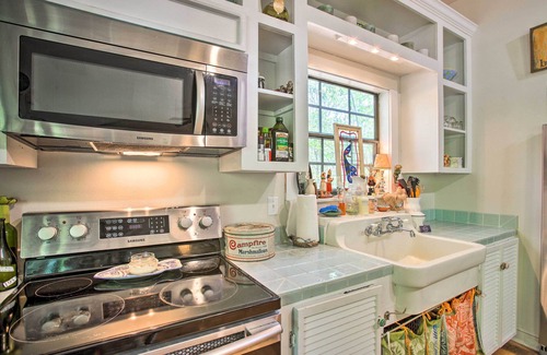 Framed by lush green foliage and sparkling outdoor lights, this ultra-cozy 1-bath studio looks straight out of a fairytale. Aside from the chic, newly renovated interior, other home highlights include a screened porch, a spacious deck, a creekside trail, and no shortage of scenic views. Spend your days exploring to your heart's content, and falling asleep each night to the soothing soundtrack of the on-site creek. Craving more beach time? The Biloxi coast is less than 20 miles away.