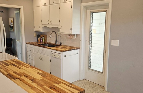 There's room for up to five people - the master bedroom has a high end queen bed, and the second bedroom has a twin over a double bunk bed. The kitchen is stocked with everything you need to cook meals and enjoy your morning coffee. The living room is large enough to provide a comfy place to relax in the evening. The home is equipped with a desk and chair if you need to do some work while you're here.