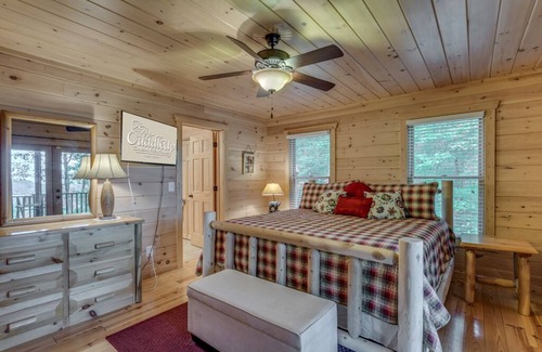 Country Dreams has an open floor plan with plenty of large windows to welcome in the natural light. Fully equipped and decorated with casual country decor, guests will find everything they need for an unforgettable vacation. The beautiful mountain view is visible from three of the cabin's four bedrooms, and three of the four bedrooms offer guests a flat screen TV! The master suite also has its own mater bath. The comfortable living area with oversized chairs, a plush sofa, and a gas fireplace along with the updated and well-equipped kitchen and a six-seat dining room complete the experience.