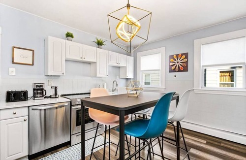 Our kitchen has everything you need for your stay in the Watch City. Brand new appliances, stove, oven, microwave, dishwasher, refrigerator, coffee maker, blender, electric water kettle, toaster, utensils, plates and all of the other kitchen essentials to make your stay a pleasant one.