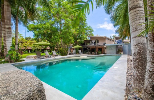 Rancho Poco a Poco 10 Bedroom Estate in Sayulita is nestled comfortably within a private garden oasis of over an acre of land surrounded by mature palm trees and a variety of other jungle species. With a heated saltwater pool and wellness space Rancho Poco a Poco has become the ideal getaway! The property holds three separate dwellings which were carefully designed with the concept of traditional Mexican hacienda meets contemporary craftsmen to create a safe harbor of tranquility in the middle of the tropical jungle; yet is situated only minutes away from the famous surf break and beaches of the bohemian village of Sayulita and the bustling good times of local restaurants, bars, and shopping mercados.