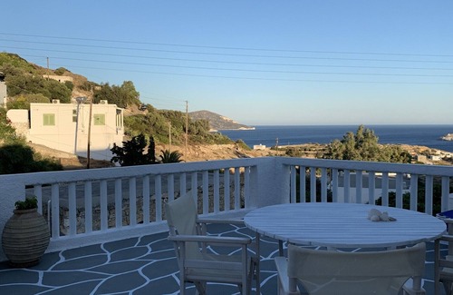 The house is located in Kimolos island, Kyclades.It is 5 minutes away from the center of " Chorio" Kimolos. Wonderful view to the sea from the terrace.Quiet neighborhood, big terrace with wonderful view to the sea. Two bedrooms can accommodate up to 4 adults. The first bedroom is equipped with a queen size bed and the second one with two single beds. A small sitting room with TV and free wife is available