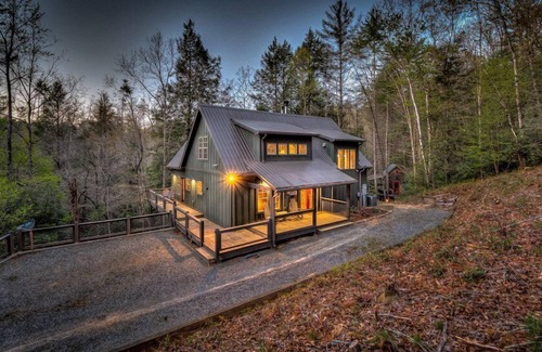 A getaway that's made for the whole family - there's room for 10 with plenty of space to relax, enjoy one another's company, and truly get away from it all. Enjoy the comforts this cabin brings as it has back porches overlooking a white-water stream where you can simply chill and let your thoughts flow.