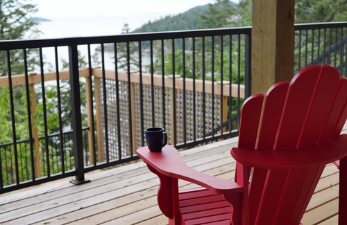 This unique place has a style all its own. An incredible view of Howe Sound and the mountains. Watch the ferries go by in this sunny place. It is ideal for singles, couples, friends and families seeking a tranquil setting, looking for inspiration or reflective time. Lounge on the patio or practice some calming exercises on the large deck off the lower level and feel the stress melt away. Hear the owls at night while you watch the moon rise over the mountain and on clear nights you can stargaze.