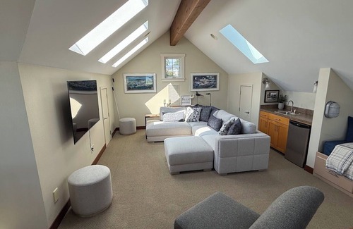 The fully equipped kitchen is a chef's dream, with state-of-the-art appliances and ample space for preparing delicious meals. Whether dining indoors or al fresco on the spacious deck, you'll enjoy meals with a view like no other.