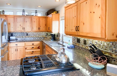 This light-filled home encompasses three stories with a floorplan that allows both for privacy and for entertaining. Three bedrooms and the bonus queen Murphy bed suite accommodate eight people. You’ll find plenty of home entertainment options (4 flatscreen TVs, premium cable, ping pong table, movies, and lots of board games) as well as a beach cart, beach chairs, and kindling to get your beach bonfire started. (Note: please check with local fire alerts and guidelines). Grab a book or board game and cozy up to one of two gas fireplaces. Watch or join the locals surfing, fishing, crabbing, or agate hunting just steps away from your vacation paradise. Surfboard and kayak rentals are both nearby.