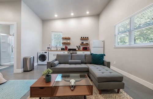 Clean and comfortable bedrooms with some unique amenities such as (4) wireless charges for smart phones, a kitchen equipped for cooking, laundry room, coffee bar with complimentary k-cups, hair dryers in each downstairs bathroom and flexible check-in with secure digital door locks! Upstairs is an excellent kids space that is an open room with two beds, a full bathroom and plenty of seating, great for a play area! The gameroom features plenty of games for the family, a custom Northwest Arkansas mural where selfies are encouraged, exercise equipment and a bike repair stand/work station for those interested in Northwest Arkansas top tier trail systems. There are also area recommendations for dining, biking, concerts and more just inside the entry from the back porch! The fire pit outback is a shared space with the other unit on the property, so that is on a first come first serve basis, but sharing is encouraged! Who knows, you might make a friend!