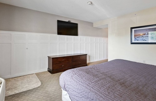 The Glacier Suite 117 is a first floor suite. It is divided by the bathroom into a living room and sleeping area. The sleeping area is furnished with a king size bed and the living area has a full sleep sofa for that extra guest or the kids. The suite is equipped with all the amenities for an extended stay including a small refrigerator and microwave.
