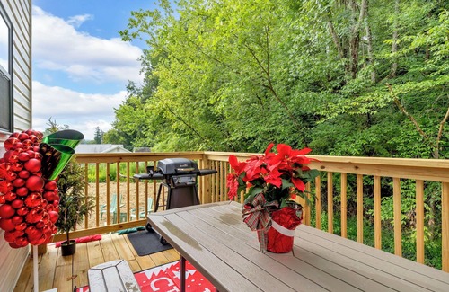 • Large deck with a grill and festive picnic table