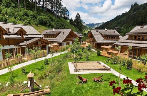 A holiday village and many adventures for the whole family: help out on the farm, petting zoo, daily free riding, football pitch, ponies, playground, go-karts, sleeping in the hay and right in the middle of the hiking paradise Großarltal. That makes children's hearts beat faster. Our exclusive holiday village is located directly on the children's exercise lift, on the bike path and about 400 meters from the Grossarl mountain railways - you do not need a car to enjoy pure skiing fun. The unique chalets are modern, comfortable, lovingly and traditionally furnished. Each chalet has a spacious living and dining area, fireplace, sauna and steam room with relaxation area. The kitchens, bedroom furniture and floors were made by the carpenter from solid wood furniture. All bedroom furniture is made of pine wood. In addition to the chalets, we also offer fully equipped apartments in the main building. The main building also has a spa area with a freshwater bathtub, massage and infrared chairs. Upon request, an Alpine breakfast and dinner will be served directly in your chalet or in your apartment. We also have special offers for our little guests. Every day the children can ride on our ponies and in addition there is a spacious children's playground in front of the house.
