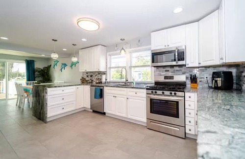 This home was fully renovated & modernized. This unit features 4 bedrooms w/ several sleeping arrangements, including a Master Suite. The open concept layout offers unhindered entertainment space. The large kitchen is flanked by the spacious living room & the inviting dining area. The stunning kitchen is as superbly functional as it is exquisitely beautiful. It features S.S. Appl, two sinks, abundant cabinets, extensive counter space & is adorned w/ gorgeous granite counters with complimenting backsplash & tasteful pendant lighting. The dining area opens to the elevated deck via sliding doors to perfectly connect the indoor & outdoor experience. The large fenced yard offers patio furniture, lounge chairs, gas grill, outdoor rinse shower and a stone fire pit for outdoor enjoyment. There is central A/C & forced heating, recessed lighting & hardwood floors throughout the home. There is also complimentary washer & dryer in the unit. Beach passes and a parking pass are included with this apartment. Come enjoy everything this home has to offer in beautiful Long Branch, New Jersey!