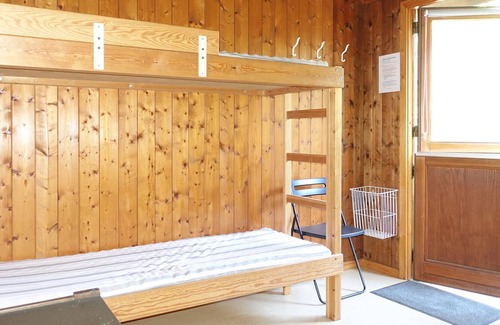 From the Holsterodde resort it is only 400 meters to the nearest large, beautiful beach. The main building has a fully equipped commercial kitchen with dishwasher, refrigerator and freezer. In the main house there is also a large lounge with wood stove, divided into a dining area and an open living room with TV and wifi. Shared toilets with shower room each for both sexes are located outside. The sleeping places are distributed as follows: Two bedrooms with two beds each; one bedroom with two bunk beds; three cabins with two bedrooms with four bunk beds each; one cabin with eight bunk beds; one cabin with four bunk beds.