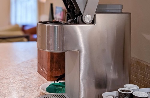 The fully equipped kitchen has everything you need to prepare and enjoy family meals, including a Keurig coffee maker. We provide coffee pods, or you're welcome to bring your favorite K-Cups from home.