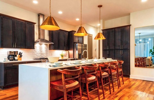 The Lookout blends Nashville energy with modern comfort, made for groups who want fun and ease. In fall, head up to two rooftop decks for skyline sunsets, then turn the garage into your private karaoke stage. Inside, a roomy living area, game room, and chef’s kitchen make time together simple. You’re minutes from 12 South and East Nashville’s Five Points, plus a short ride to The Bluebird Cafe. Set up your VRBO home base between shows and stadium days.