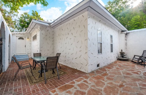 Modernly renovated 4 bedroom/4 bath mediterranean style villa super centrally located within 8 minutes from downtown and the popular Pearl complex. Full of fun, family diversions including two massive outdoor courtyards, a netted trampoline, a ping pong and numerous of dog and cat amenities (3500 sq ft enclosed backyard).