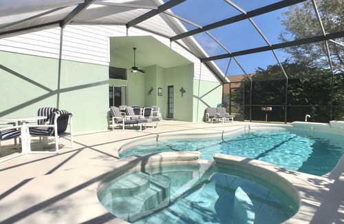 (Extra COVID-19 cleaning: We are committed to following the CDC cleaning guidance). The Villa 'OASIS' is located 25 mins away from Disney and within short driving distances you will find all other major attractions, first-class golf courses and great shopping outlets. The villa is located in a quiet community with no traffic noise. It is overlooking a conservation area and has a south-facing pool and spa with sun most of the day. The pool area is shielded for extra privacy, so you can enjoy the area undisturbed. The pool and spa can be heated (optional, additional fee). The pool deck easily hosts 10 people, and there is a barbecue at your disposal. The pool area is equipped with fence for the safety of the little ones.