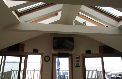 The Living area is tastefully decorated in a mid-century modern design. There are 4 skylights and two sliding glass doors for plenty of natural light. Lounge on the deck with your summer reading list or just watch as the New Bedford fishing boats go by in the distance.