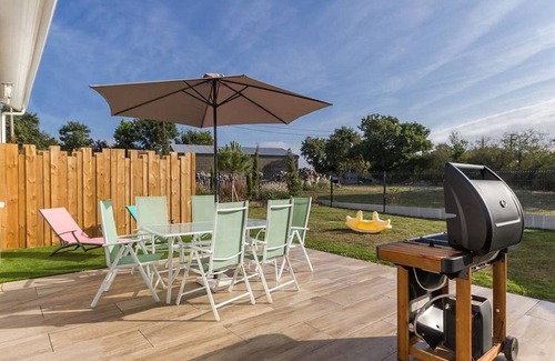 Family-Friendly Farmhouse: 4 km to Beach, 2 km to Shops, Garden, WiFi, Baby Gear is located in Pornic. Family-Friendly Farmhouse: 4 km to Beach, 2 km to Shops, Garden, WiFi, Baby Gear provides accommodation, featuring TV, Balcony/Terrace, Barbecue/Outdoor Cooking, among other amenities. This Cottage features TV, Balcony/Terrace, Barbecue/Outdoor Cooking, to make your stay a comfortable one.