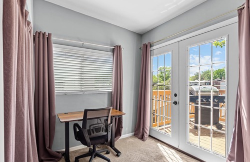 The first bedroom includes a full size bed with a twin trundle underneath, closet, and a 43 in. Roku TV. The second bedroom includes a high quality and extremely comfortable queen bed and 43 in. smart Roku TV with plenty of room to store clothing and other items in the dresser, two side tables, or closet. The third bedroom, located in the back of the home includes a comfortable queen bed, two side tables, book shelves and large closet, and access to the back patio. All bedrooms are equipped with a sound machine, to ensure a sound sleep for all guests (even if you’re traveling with young ones or noisy friends!)