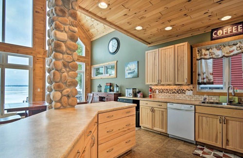 Spend time with your family on vacation in Cadillac, home to the great outdoors!. Stay at this 3-bedroom, 2-bath vacation rental that boasts unbelievable wall-to-wall windows and 30-foot ceilings, allowing you to take in all the calming views of Lake Mitchell. Enjoy attractions like Adventure Island and Caberfae Peaks all within a 17-mile-radius. Return home to the fully equipped kitchen, wood-burning fireplace, and heated tile floors for prime relaxation after a day of exploration.