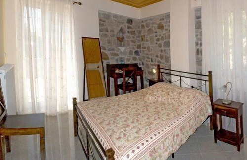 Petrini Krini is located in the small village of Ypsilometopo,in the North of Lesvos island. It is in a peaceful environment, in a 15 min driving distance from the main tourist areas. This traditional Stone House can host up to 6 guests in each apartment. There are 2 independent, fully furnished apartments. Our pool and the beaches of Petra and Molyvos will refresh you in summer, while the mountain and our fireplace will offer you quiet, cozy moments of relaxation in winter. The location is ideal for daily trips around the island. This apartment is at the first floor of the house, it has it's own private entrance. There is a large private terace where you can take the sun and where children can play. Ypsilometopo is a small picturesque village, literally smothered in green. The architecture of the village with traditional stone houses and stone paths, the old fountains with running water and the preserved church of Archangel at the entrance of the village will satisfy the visitor. From here hiking trails also start, where you can enjoy the beautiful and unique landscape of the island. You will enjoy traditional local dishes in the two village tavernas, while a few kms away in Stypsi, Petra and Molyvos you can satisfy your further desire for food and entertainment.