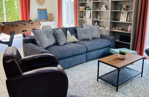 Relax in the garden (enjoy the outdoor furniture!) or sip a drink on the deck or patio of this 1722-sq-ft vacation home. For a change of scenery, come inside and try your hand at foosball, or enjoy the free WiFi and TV.