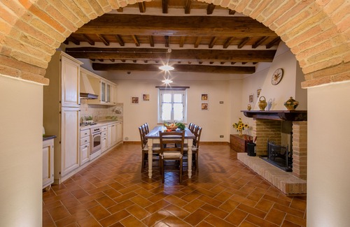 Interiors are spacious, bright and cosy; the classical features of country architecture: brick vaults, in-sight beams, recesses and terracotta floors melt with the pieces of furniture, making every space comfortable and welcoming. Villa Il Giardino di Diana is composed by two twin apartments, each of them with living room, large fully-equipped kitchen, 3 large double bedrooms and 2 full bathrooms.