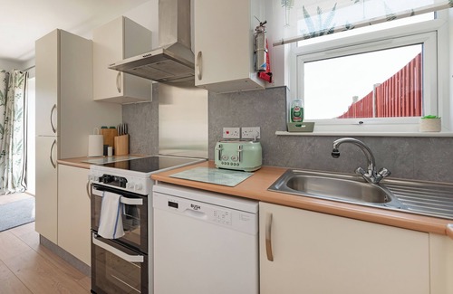 Kitchen area - modern fitted kitchen complete with double fan oven with grill, extractor fan, sink and drainer, dishwasher, fridge with freezer compartment, ample storage space, kettle, toaster, microwave, and fully stocked with plates, cups, cutlery, crockery, baking/roasting trays, saucepans, frying pans…in fact everything you need!
