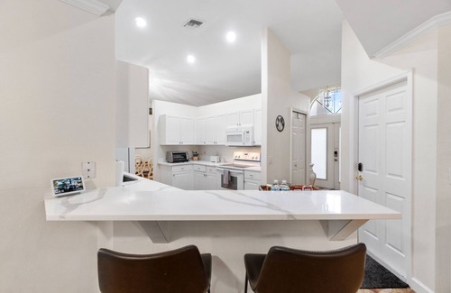 Relax with the whole family at this peaceful Fort Myers getaway. Sleeps 8 guests. 3 bedrooms and 2 baths. Master bedroom has large shower and soaker tub and private pool access . Open and spacious entertaining space is perfect for making family memories. Fully equipped kitchen with ample seating. Enjoy the beautiful pool and patio, complete with outdoor dining space. This is truly a serene and peaceful home away from home!
